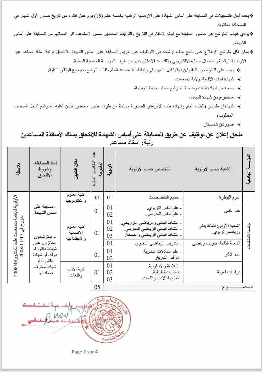 📢 إعلان عن توظيف أساتذة مساعدين – جامعة تامنغست