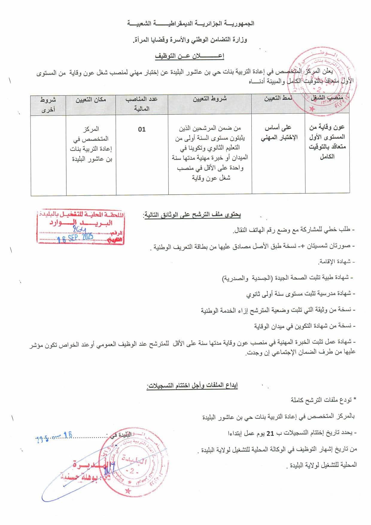 تعلن مؤسسات حكومية بولاية البليدة عن فتح عدة مناصب توضيف كما هو مبين في صور .