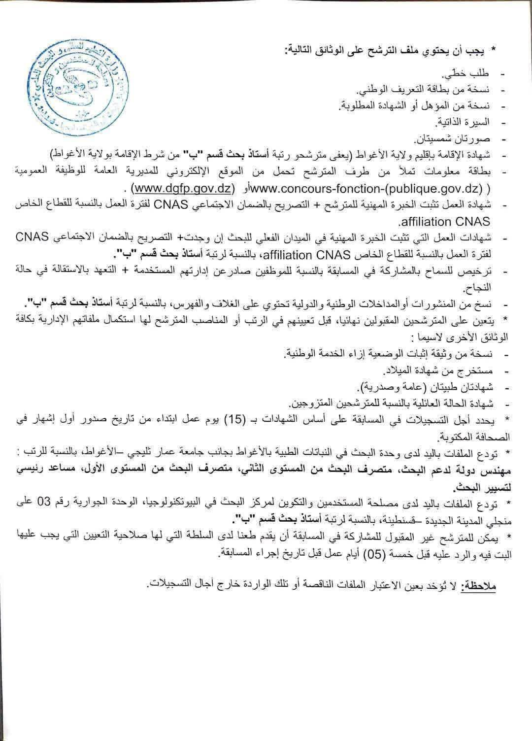 أستاذ بحث قسم "ب" (01 منصب)
